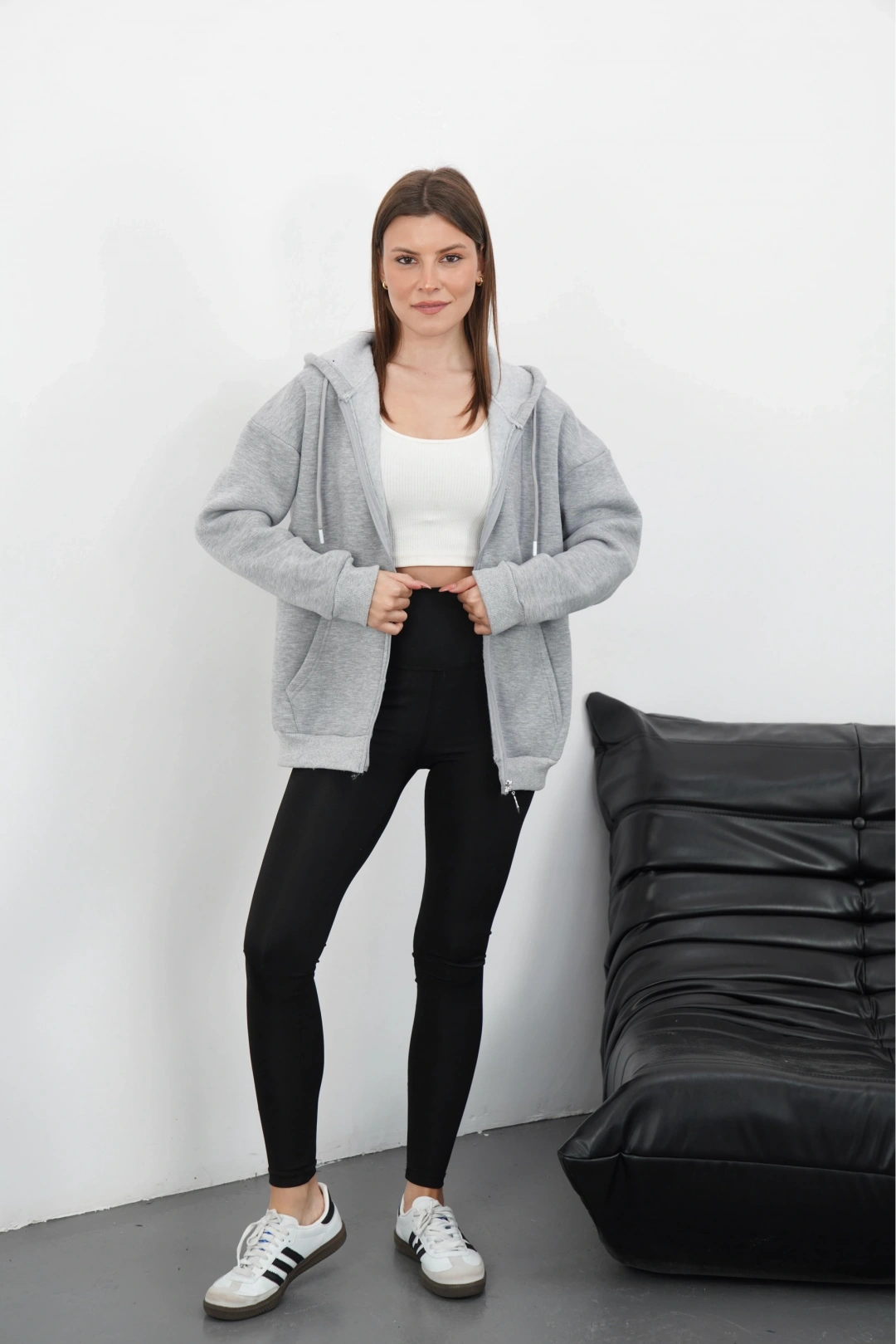 3 iplik şardonlu fermuarlı kapşonlu hırka gri, günlük şıklık ve rahatlık arayan kadınların favorisi olmaya aday bir parçadır.