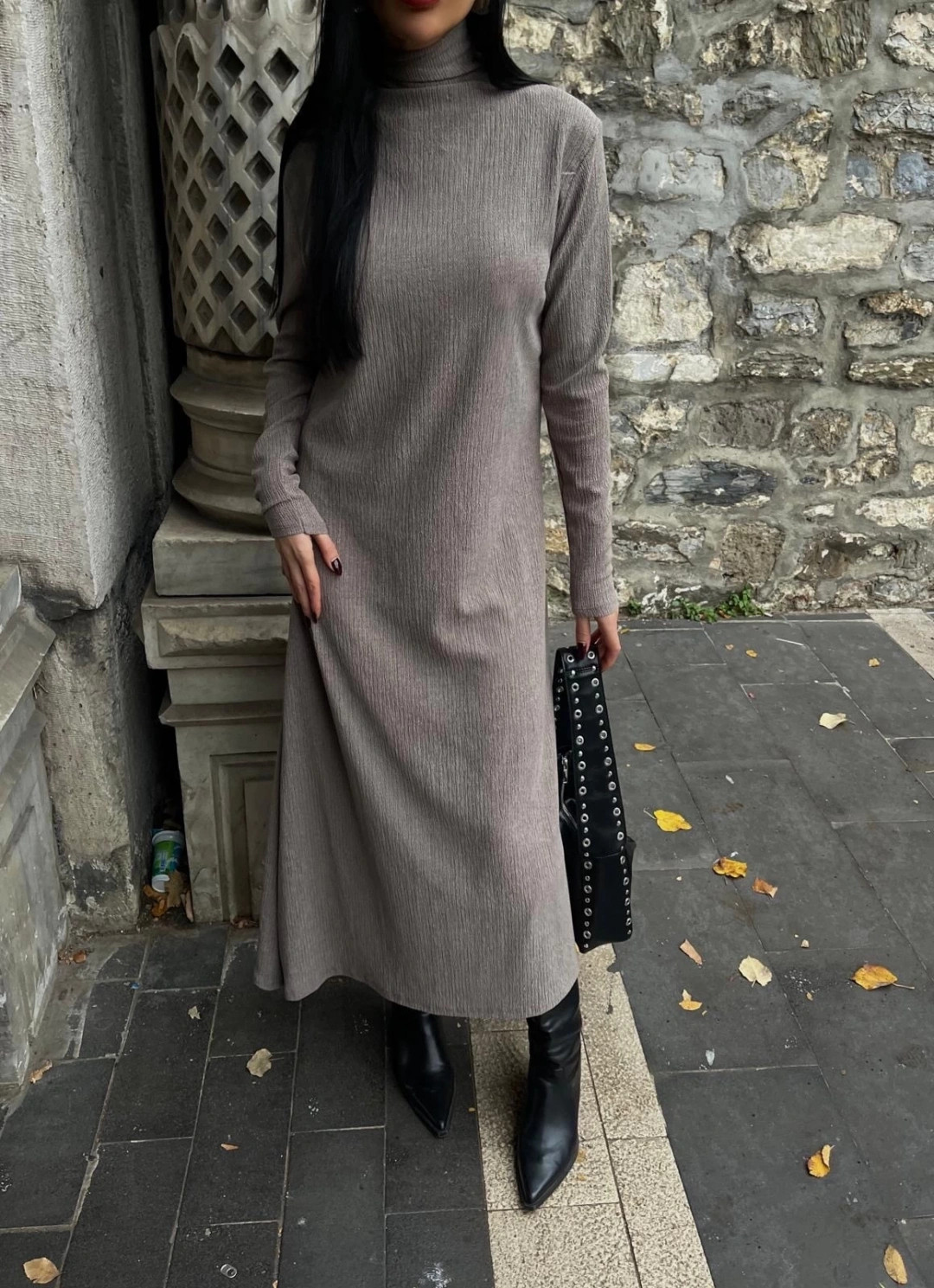 Bu sezonun trend parçalarından biri olan Boğazlı Kalın Bürümcük Uzun Elbise Vizon, şıklığı ve rahatlığı bir arada sunuyor. İster günlük hayatta ister özel davetlerde tercih edebileceğiniz bu elbise, tarzınıza şıklık katacak.