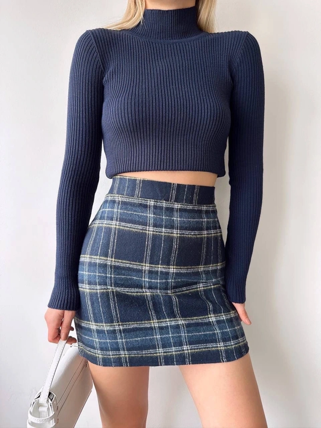 Ekoseli kaşe etek lacivert renk seçeneği ile tarzınızı tamamlayacak şık bir parçadır. Sağlam ve kaliteli kumaşı sayesinde uzun süre boyunca kullanabilirsiniz. İster günlük hayatta isterseniz özel davetlerde rahatlıkla tercih edebilirsiniz.
