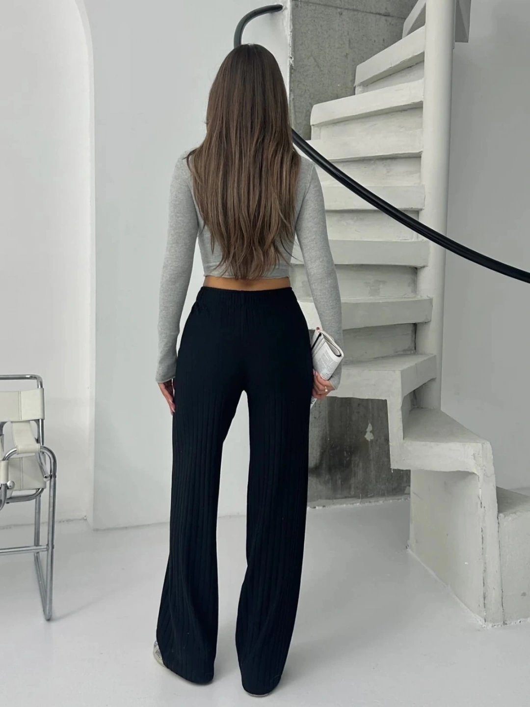 Fitilli şardonlu siyah pantolon, gardırobunuzun vazgeçilmezi olmaya aday bir parça.