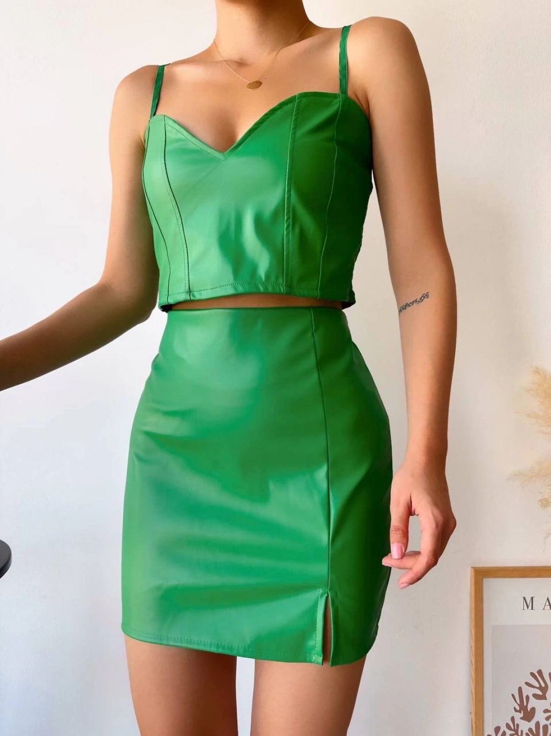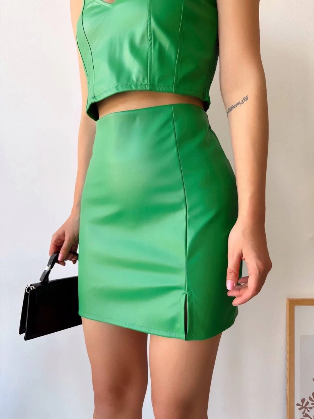Şıklık ve modern tasarımı bir arada sunan Tek Yırtmaçlı Arkadan Fermuarlı Deri Etek Yeşil S24475, gardırobunuzun vazgeçilmezi olmaya aday! Ürün detayları: