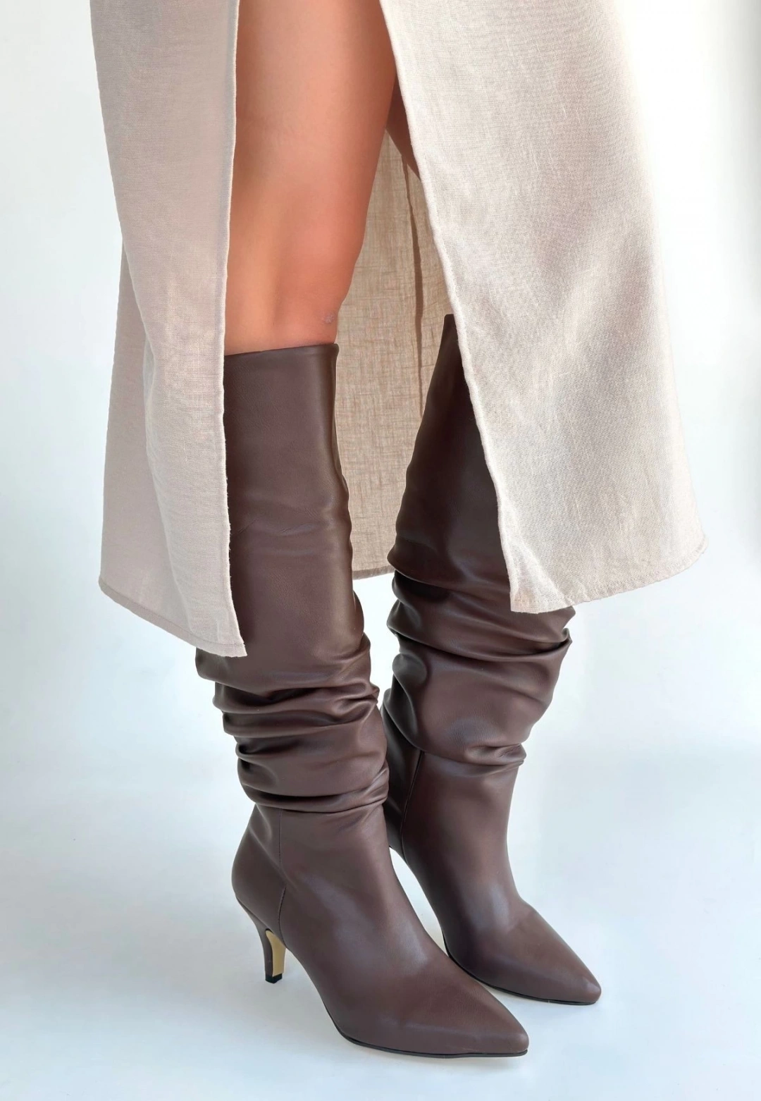 Detay : Topuklu Diz Altı Körüklü Çizme